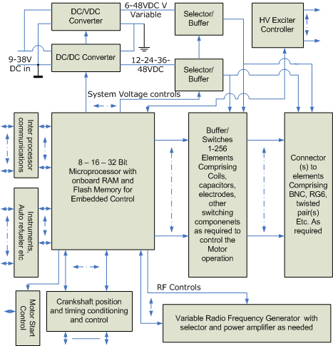 The Electronic control systems are fully programmable to take advantage of all new lessons learned as Plasmic Transition Process progresses with their objective of replacing internal combustion motors, as well as finding uses that have not yet been conceived. "Plasmic Controls, Inc.", a sister company, is the focal point for any innovative thinking along these lines.